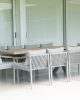 Juego de Comedor para exterior, con Mesa Extensible de 180 a 240cm, con estructura de aluminio y Sillas con almohadones tapizados en tela 100% impermeable, con tratamiento PU Coating.